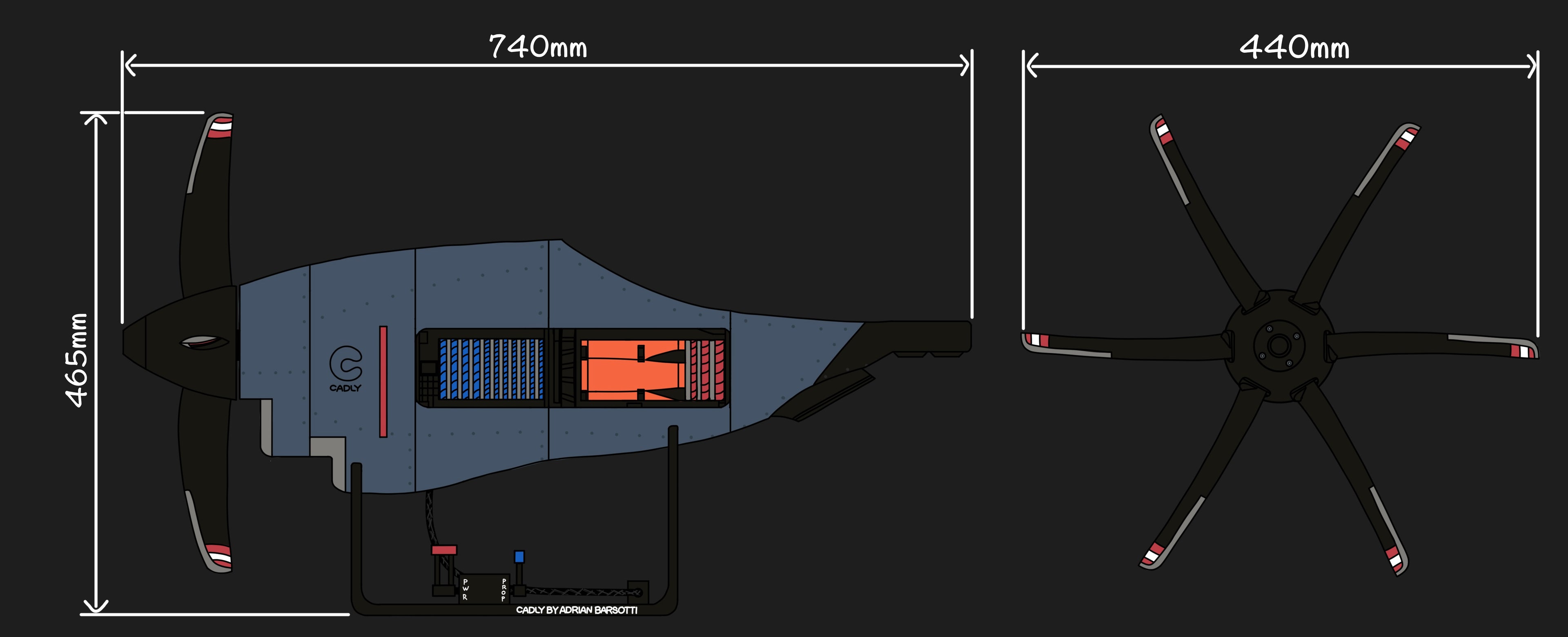 Utilising a double planetary gearbox design, allows the propellers to vary in pitch while in motion to produce more thrust at a constant RPM.